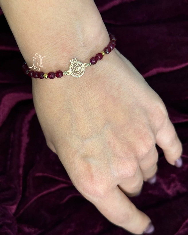 دستبند طلا زنانه مدل پلاک انار با سنگهای دانه اناری